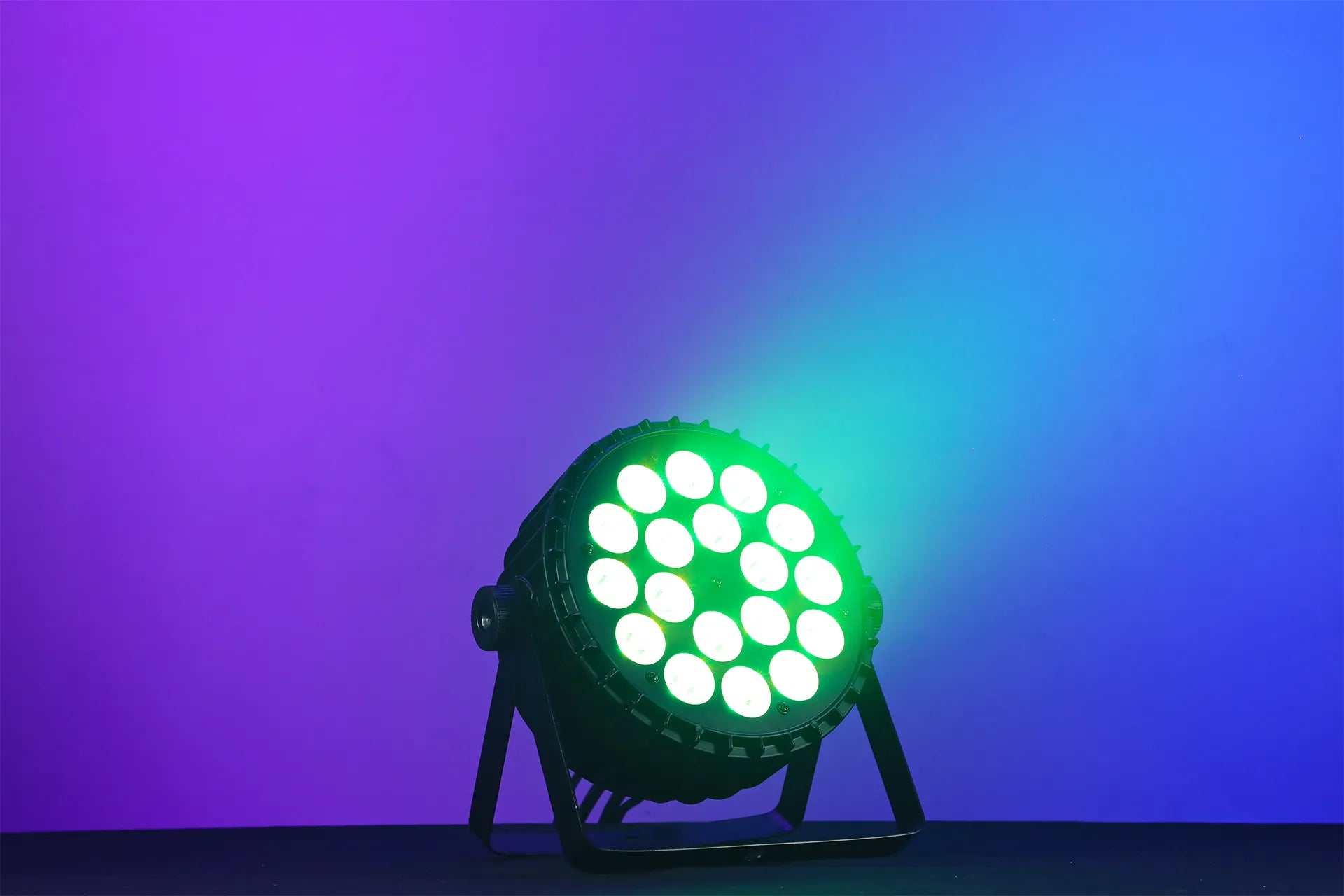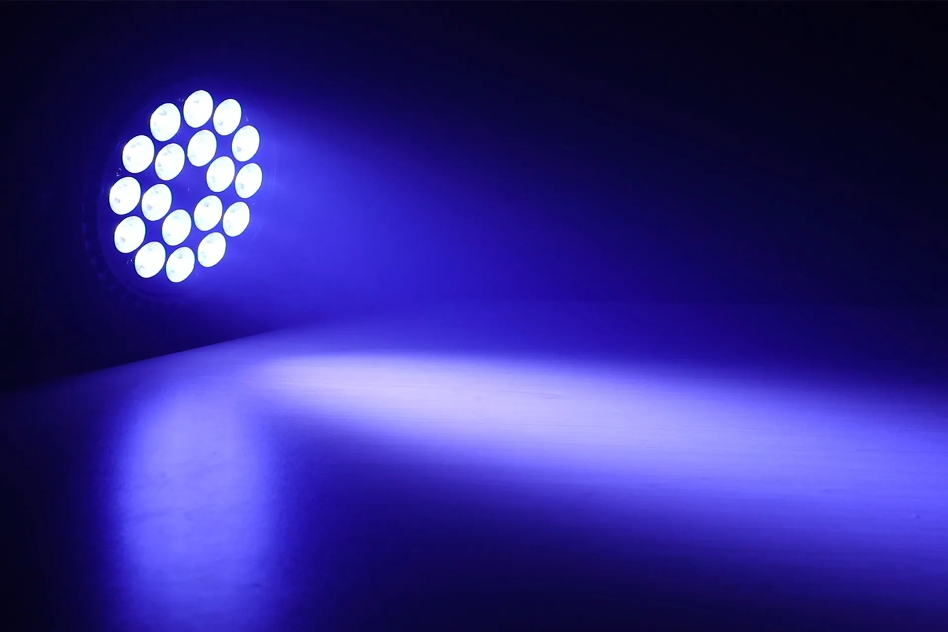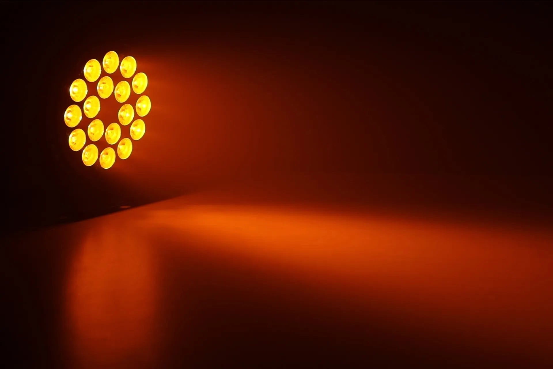 本製品は18W×18個の高輝度LEDを採用。ライム・アンバー・UVに加え、RGBを組み合わせた6in1カラーで、多彩なライティング演出が可能です。