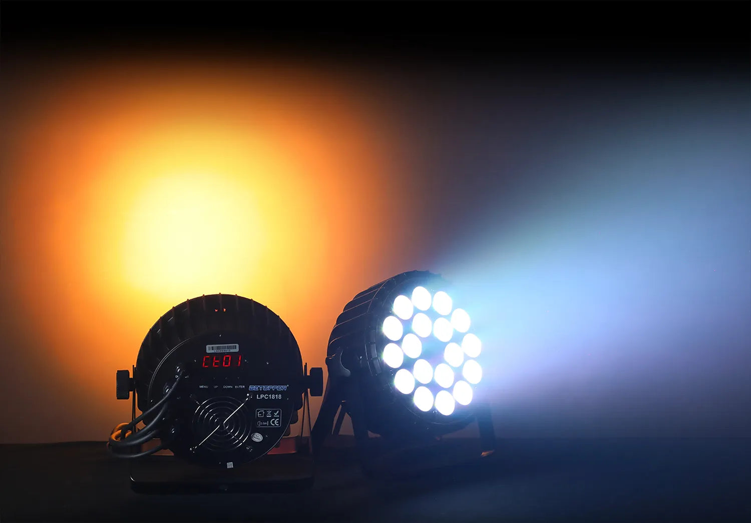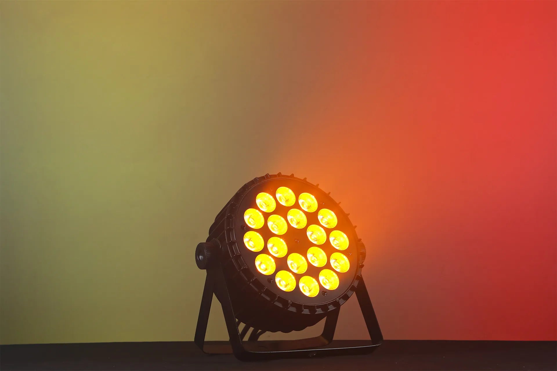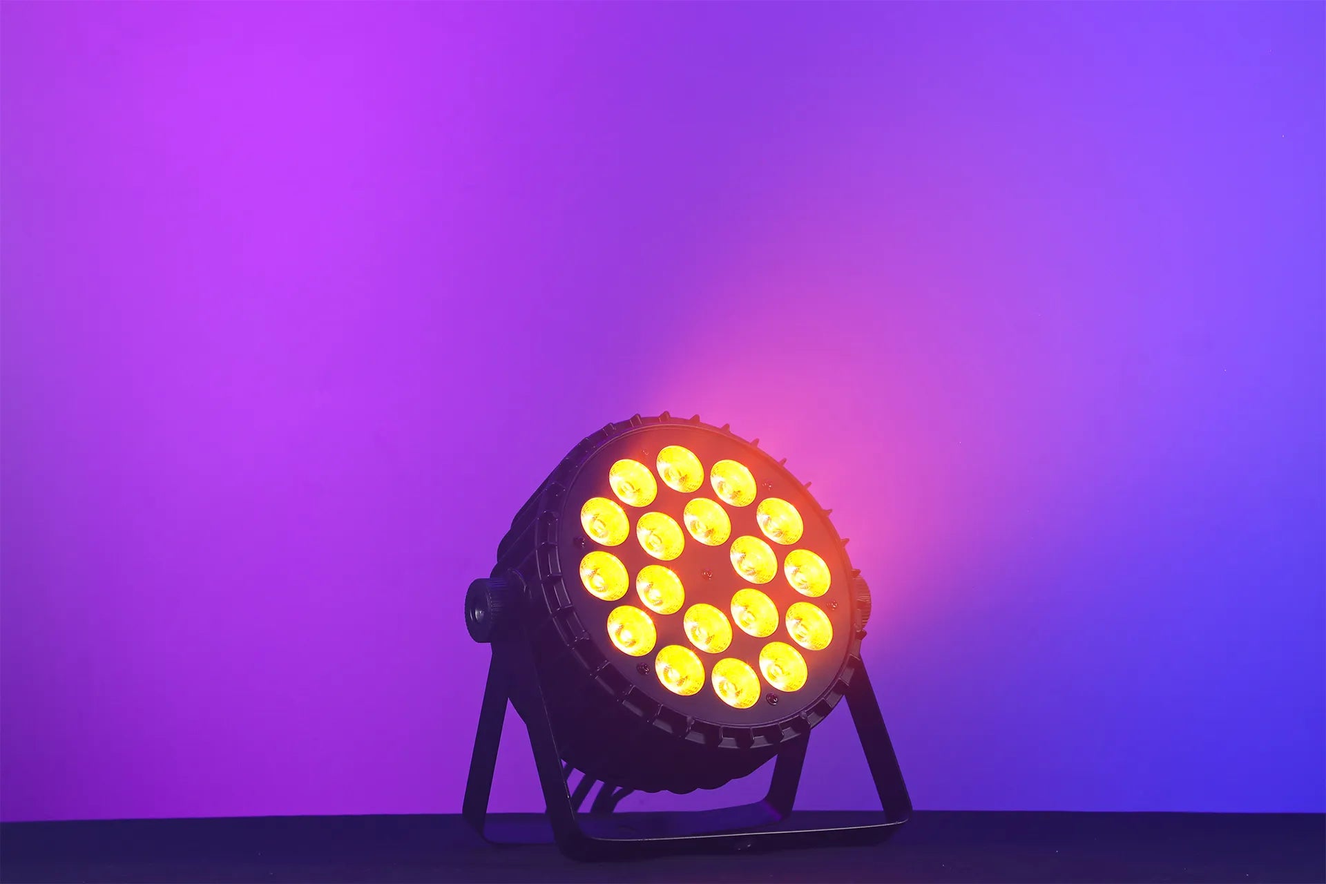 本製品は18W×18個の高輝度LEDを採用。ライム・アンバー・UVに加え、RGBを組み合わせた6in1カラーで、多彩なライティング演出が可能です。