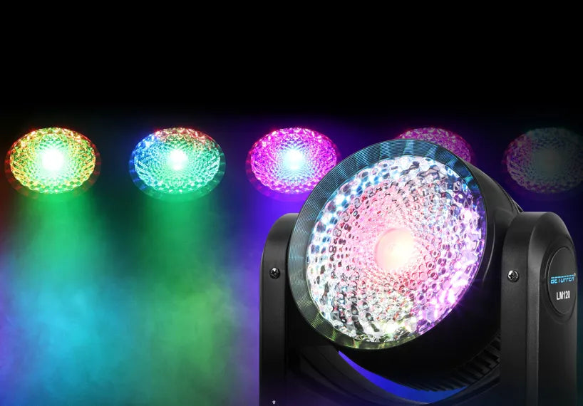 BetopperのLED 120W RGBW 4-in-1ムービングヘッドライトは、3300ルーメンの高輝度と滑らかな色合成を誇り、DMX512・サウンドアクティブ・自動運転など多彩な制御に対応。水平540°・垂直270°の広い可動域と美しい光拡散レンズにより、ウェディングやライブ、クラブなどあらゆるイベント空間を華やかに演出します。