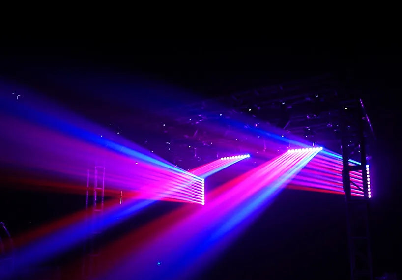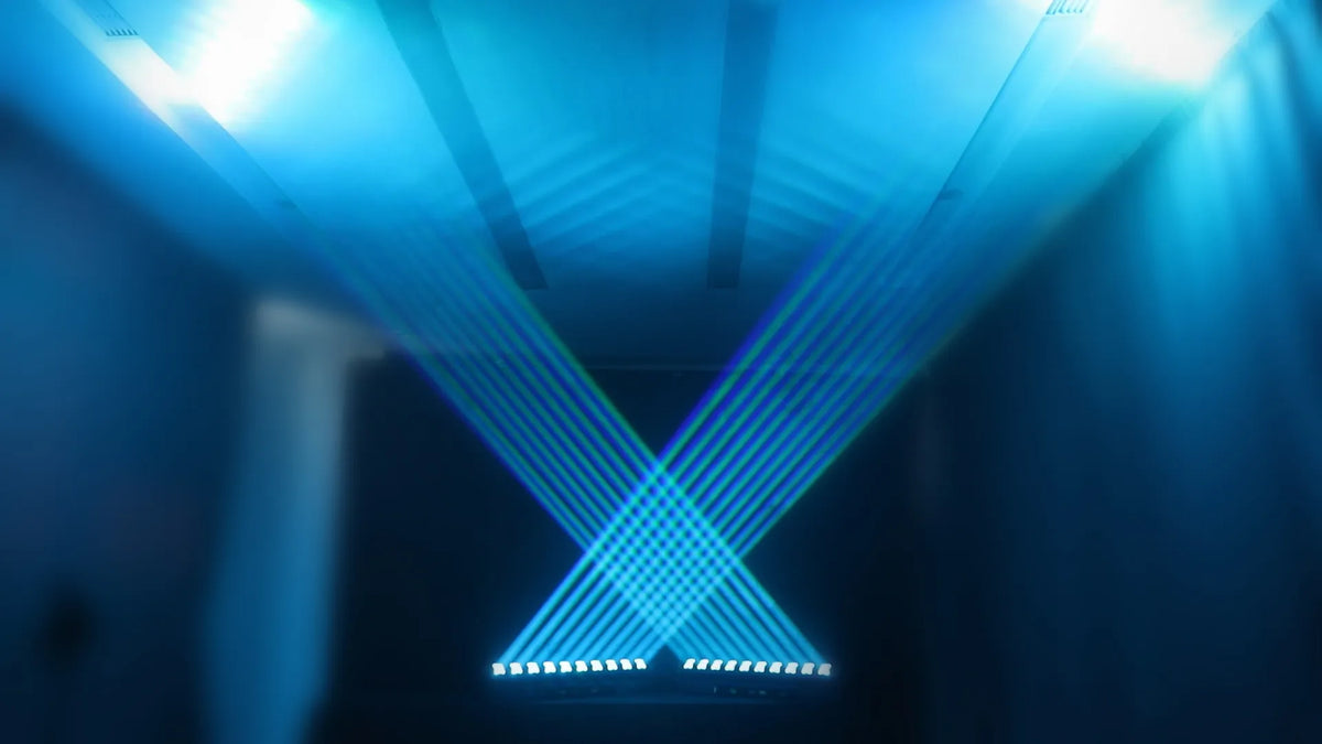 これらのライトは、壁に近距離でスムーズなカラースポットを作るためのものではありません。本来の目的は、霧や煙の中で躍動感のある高輝度ビームを放ち、エネルギーと明瞭さで空間を切り裂くような演出をすることです。
