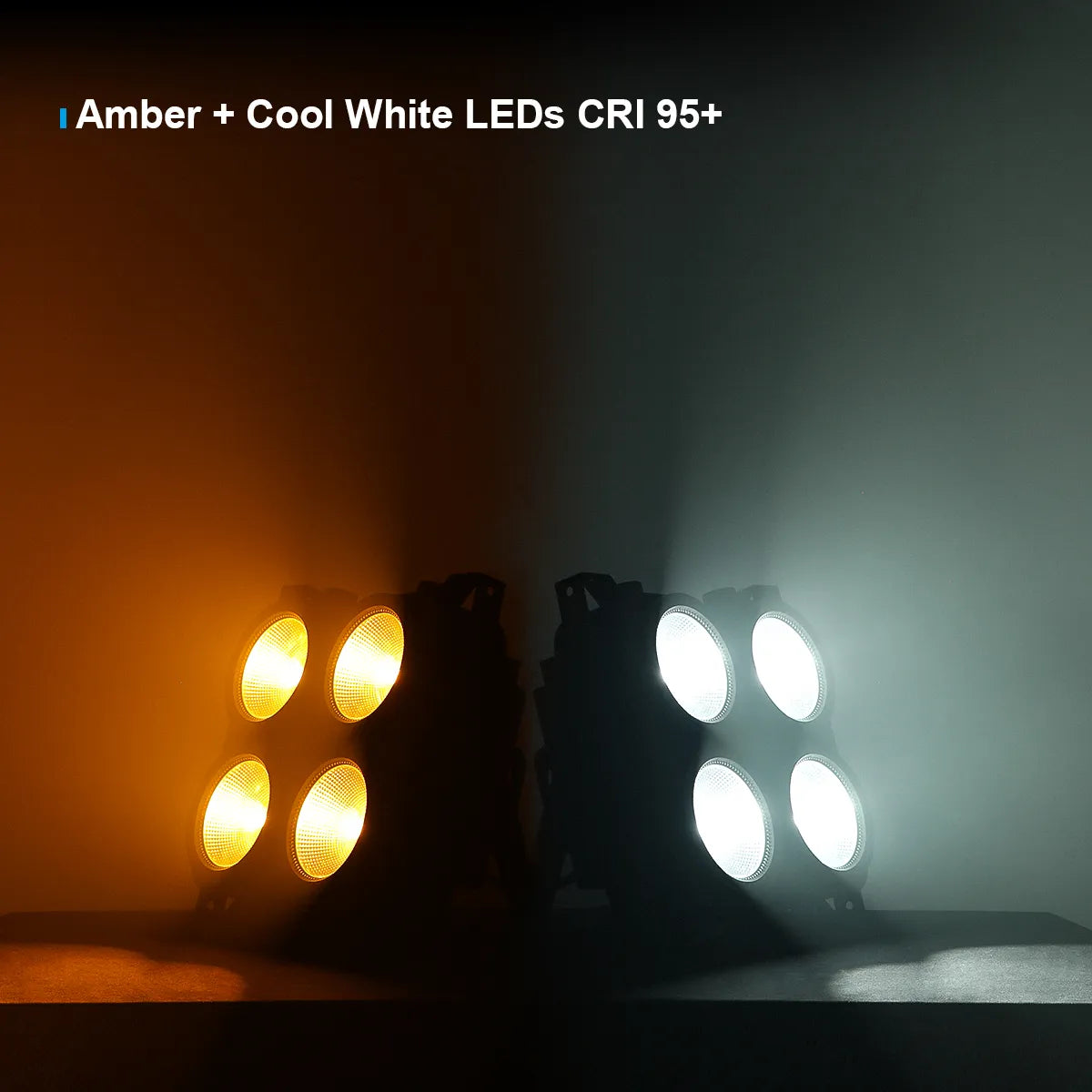 このアンバー+クールホワイト COB ブラインダーライトは、より豊かで没入感のあるステージ演出を実現します。