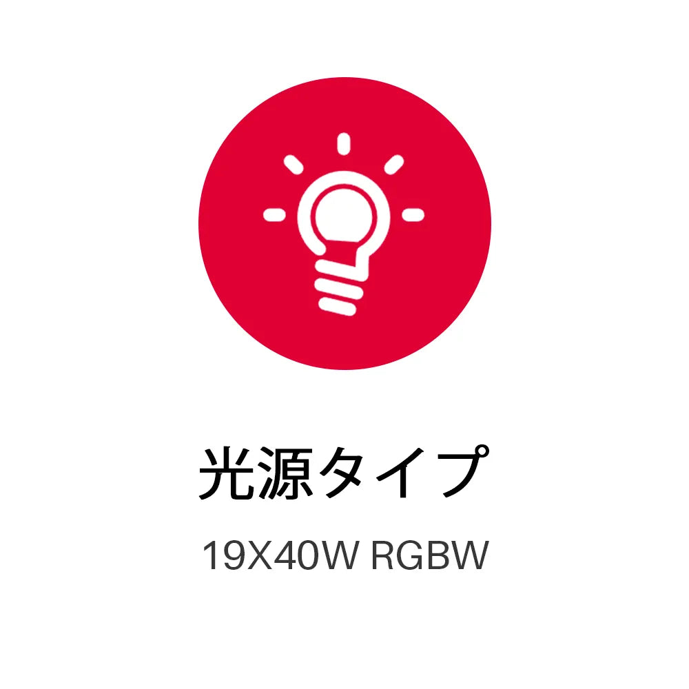 - タイプ:19×40W 高出力 RGBW 4-in-1 LED
