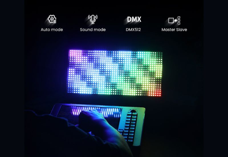 LF105は、Zone Aに36種類、Zone Bに41種類のアニメーションモードを内蔵。左右それぞれを独立制御するデュアルゾーン設計により、非同期ムーブメント、レイヤー演出、コントラストのあるカラー挙動、分割ビジュアル表現を簡単に実現します。