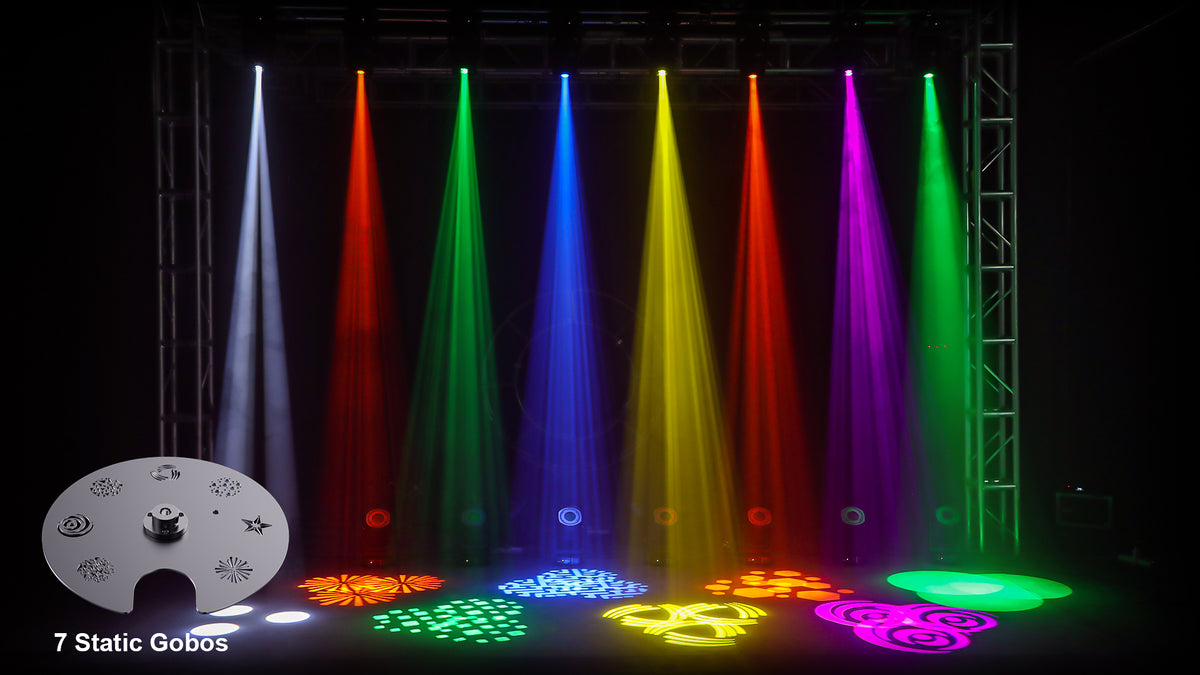 交換可能な回転ゴボホイールを搭載し、シャープなビーム、なめらかなウォッシュ、そして印象的なゴボ投影を実現します。