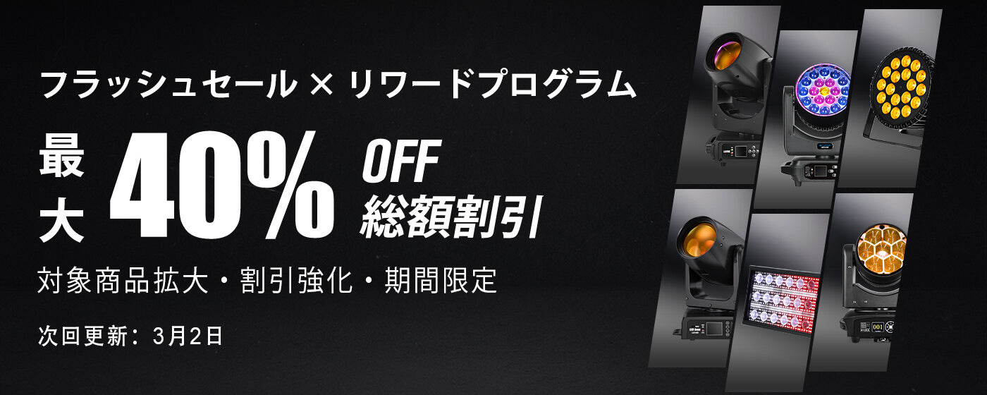 ストロボライトは、高強度の閃光で音楽の瞬発的なリズムやインパクトを強調します。
